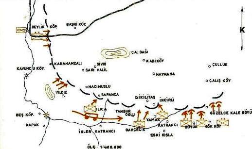sonucu, Ilıca Deresi güneyinde bulunan 5 – 6 tümenlik esas Yunan